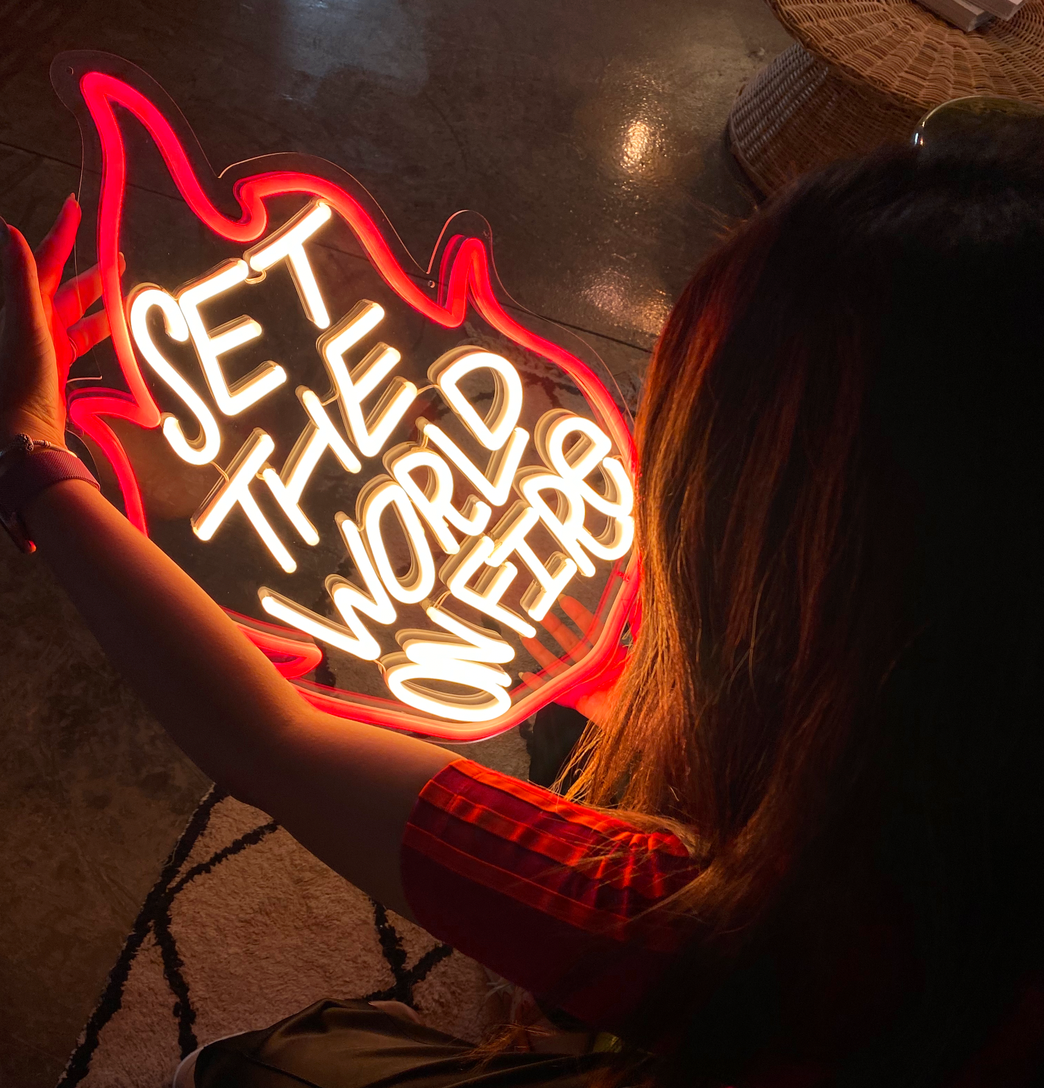 I’m Charlotte de Belle, a French neon artist who fell in love with fire, glass, and glow in New York. That obsession grew into my own art studio, Vertical Design, based in Dubai. Here, neon and LED aren’t signage; they’re art for walls, for spaces, for living with.